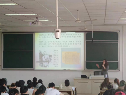 汲梦喆老师讲授了“中国人民奋起抗击日本侵略者”这一主题,主要内容覆盖中国共产党举起武装抗日旗帜、抗日救亡运动的兴起、抗日民族统一战线的建立与全民族抗战的开始。汲老师通过教学视频的使用、抗日英雄人物事迹等案例的介绍,语言清晰、层层深入地展现了中国人民抗日战争过程中的英勇无畏精神。