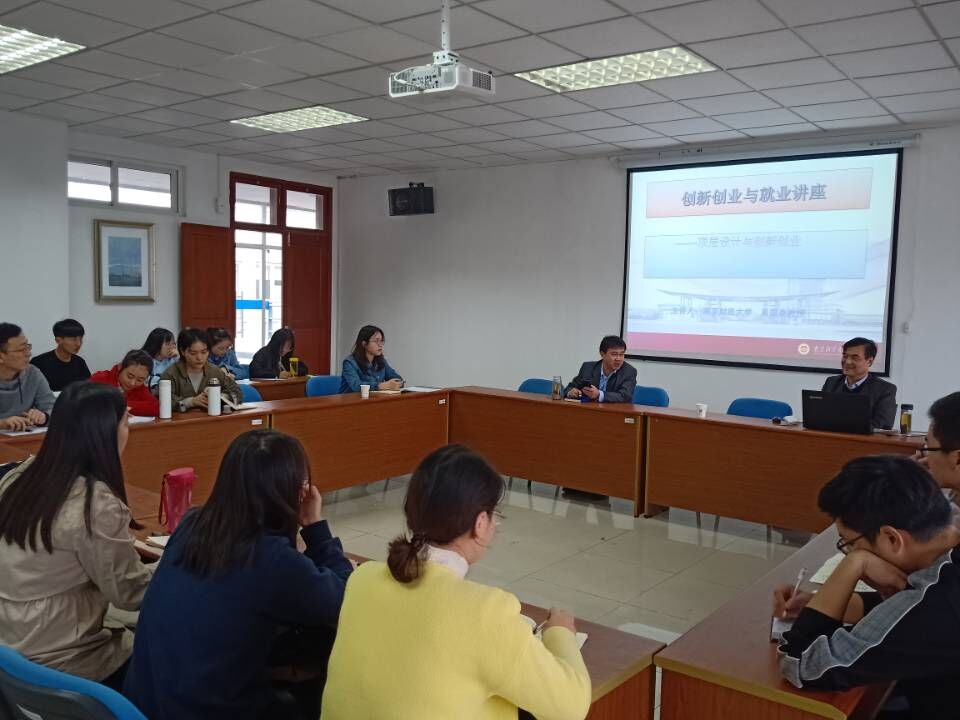 研究生作了题为“创新创业与就业——顶层设计与创新创业”的专题讲座。本次讲座由学院党总支书记耿步健教授主持。