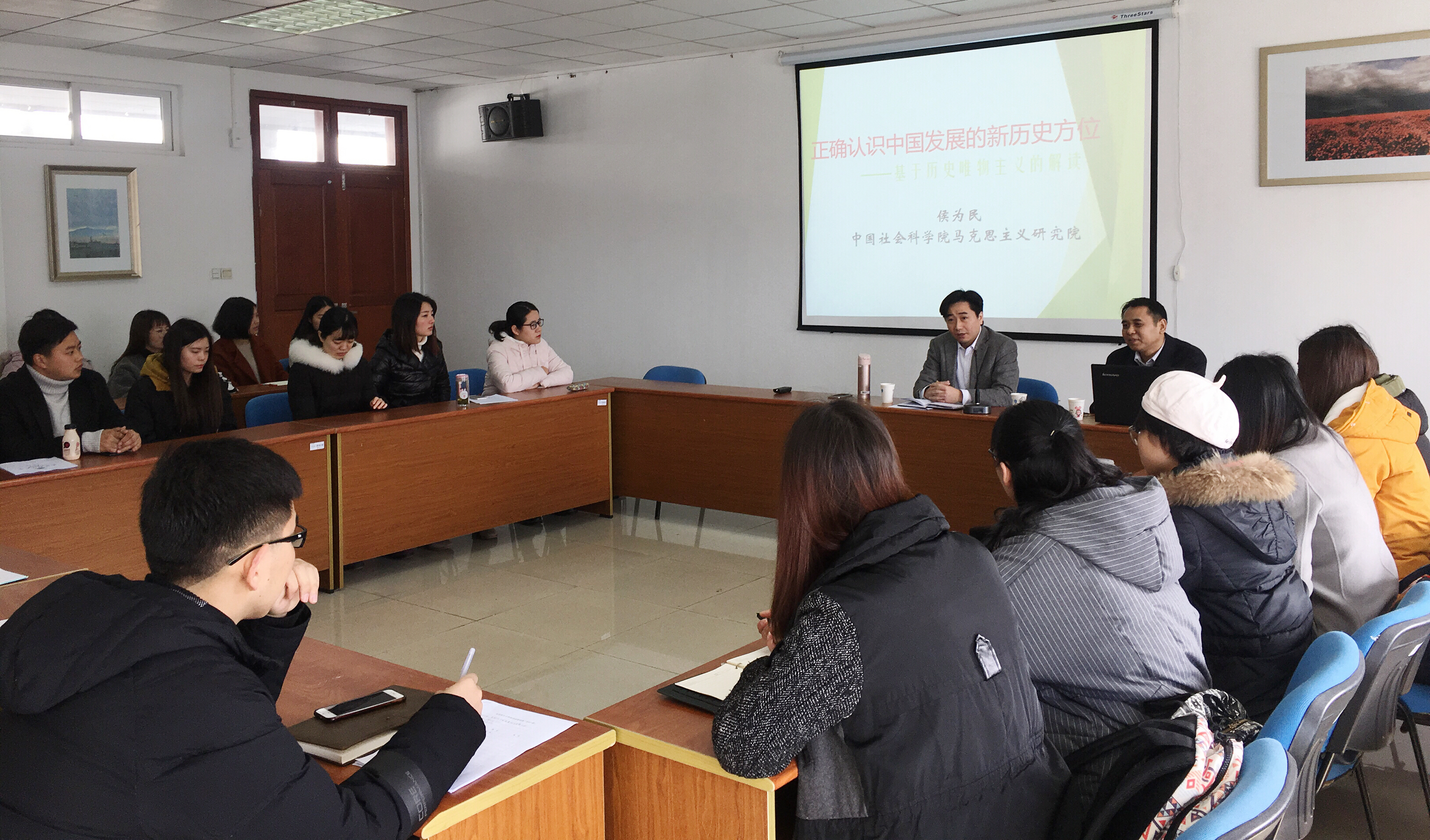 邀请,在学院会议室作了题为“正确认识中国发展的新历史方位”的学术讲座。讲座由逼喱逼喱
