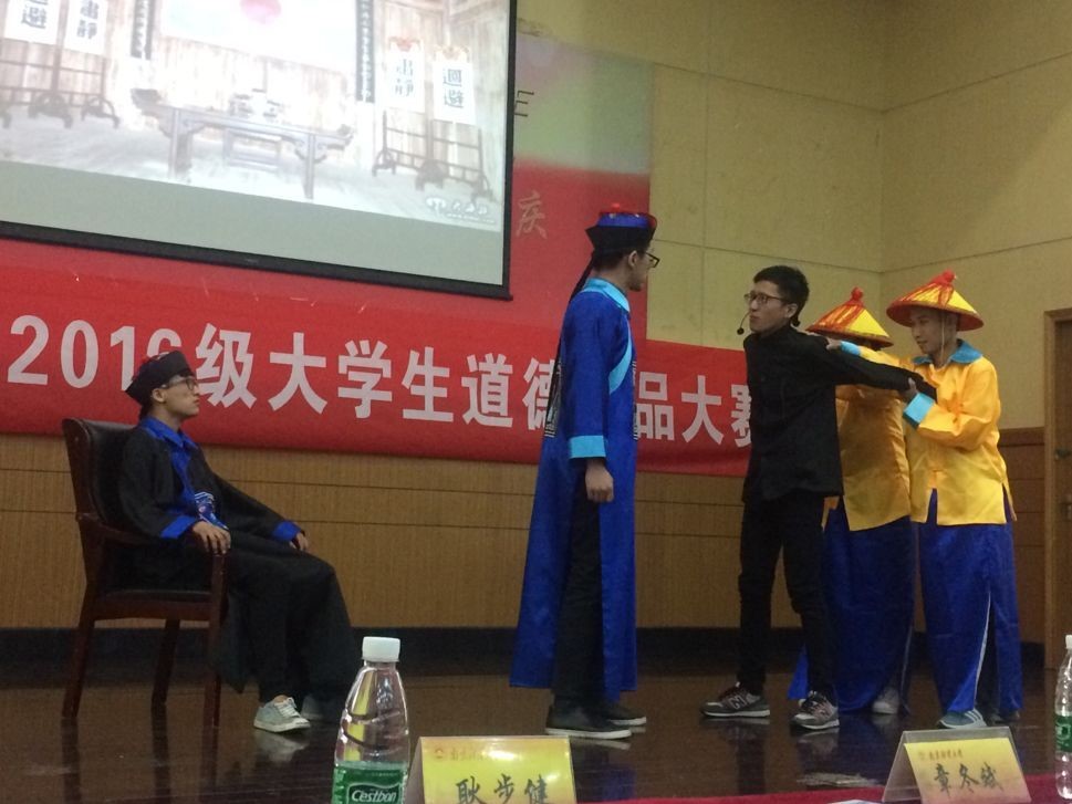 2016级大学生道德小品大赛”决赛在仙林校区专二报告厅顺利举行。党委宣传部部长韩力争老师、学生处副处长章冬斌老师、校团委书记张励行老师、逼喱逼喱