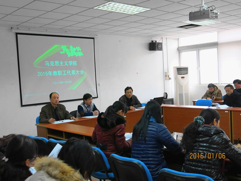 工作报告》。他首先回顾了学院2015年度在思政课教学、学科建设、科学研究、研究生培养、师资队伍建设等方面取得的成绩及存在的不足,提出了2016年学院工作的基本思路和主要设想。希望全体教职工在“十三五”规划开局之年,团结一致,开拓创新,为学院发展贡献力量。