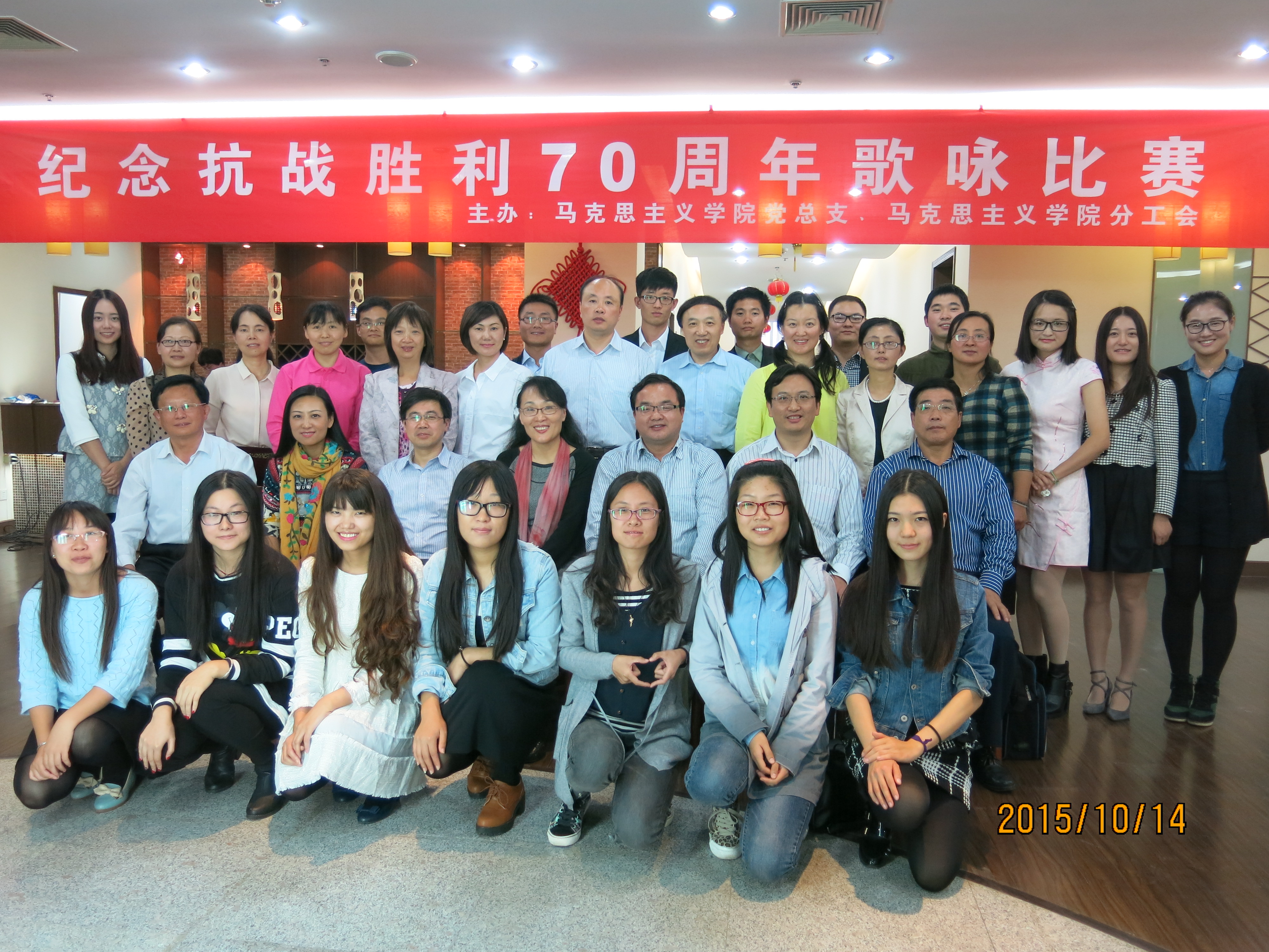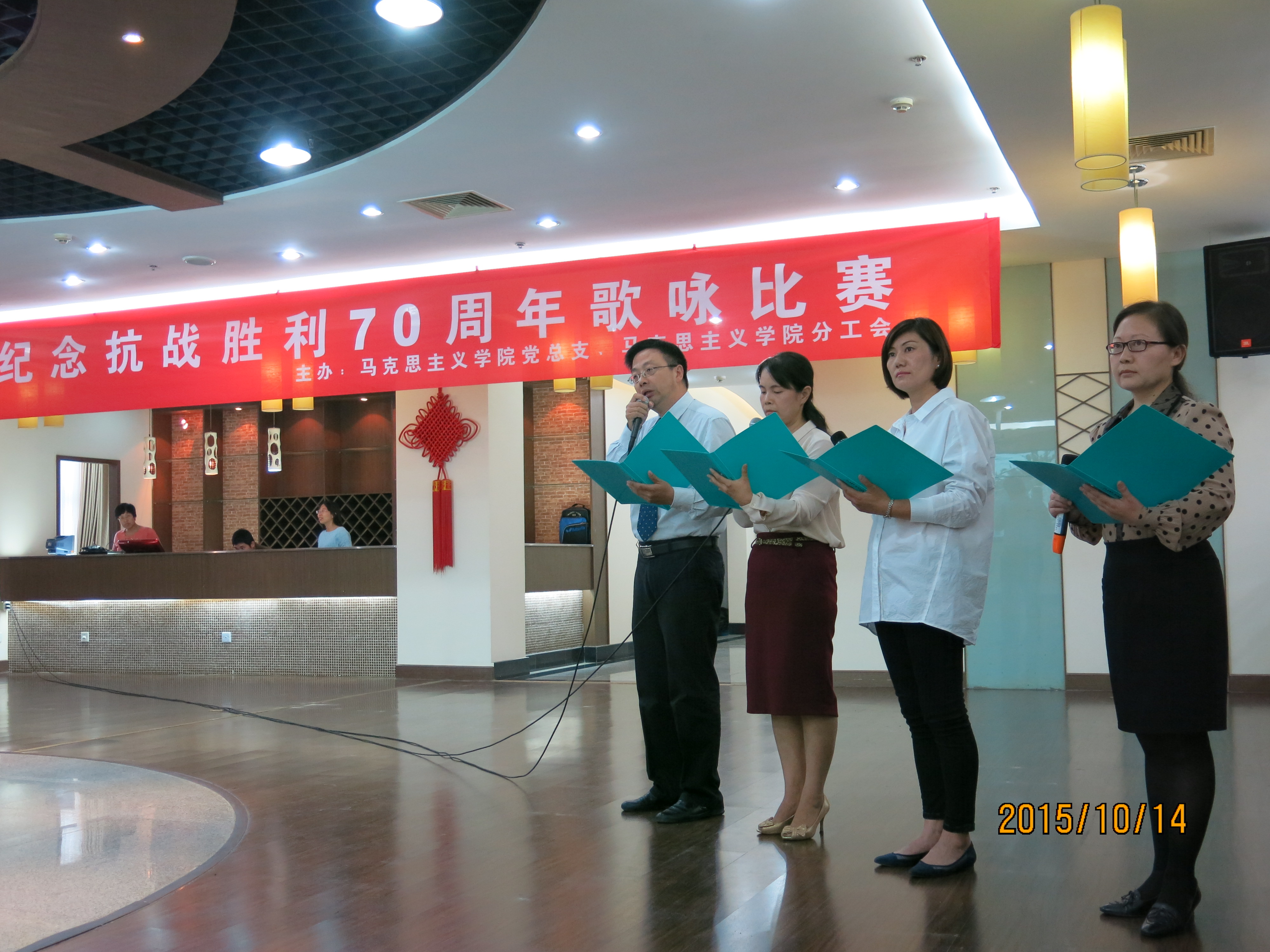 党总支、分工会主办的纪念抗战胜利70周年歌咏比赛在仙林校区行政楼17楼校工会教工之家举行。逼喱逼喱