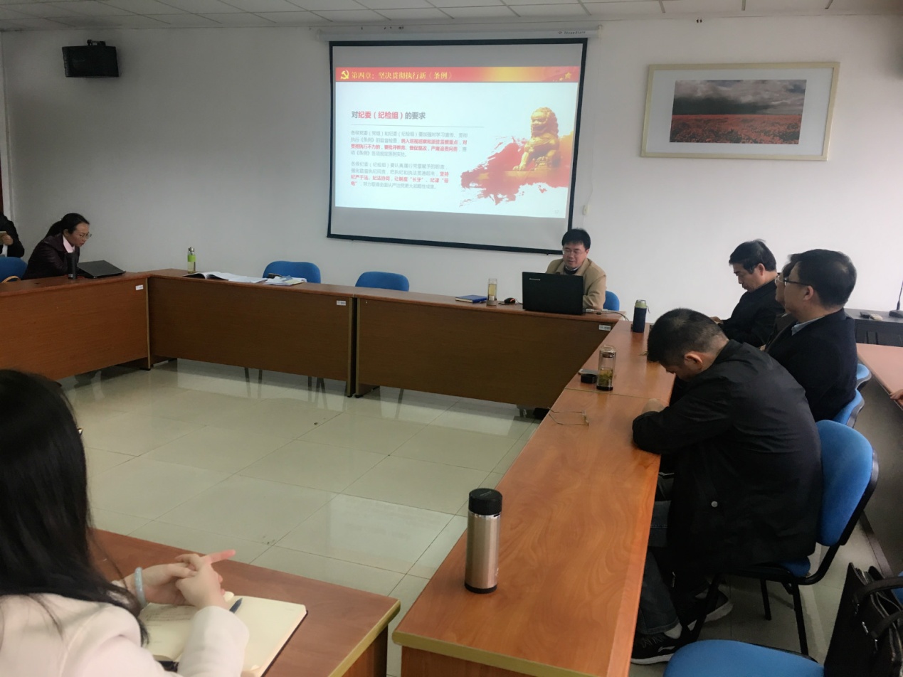 党总支书记耿步健教授对2018版《条例》进行详细解读,全体教师党员与研究生党员参加了会议。