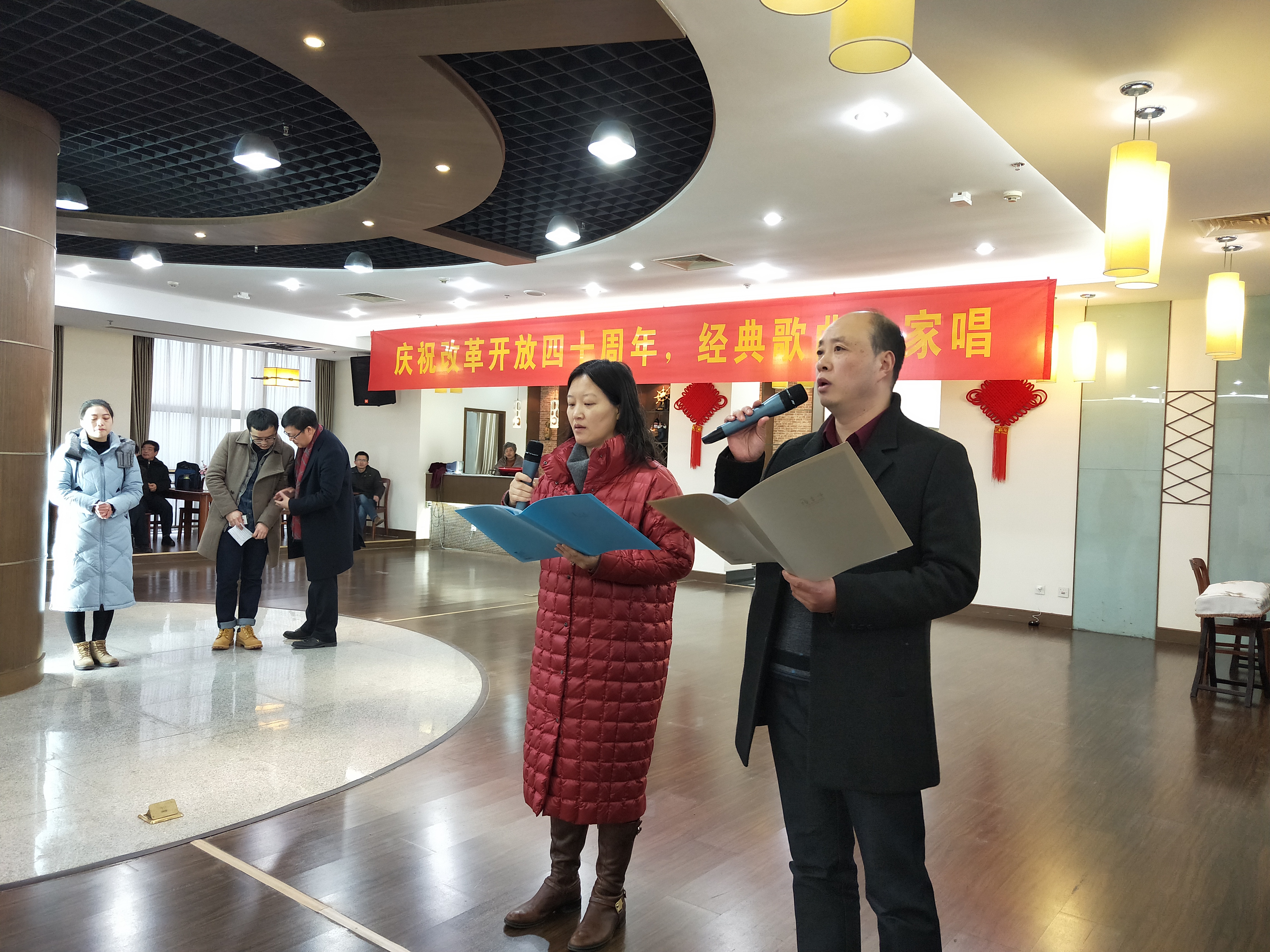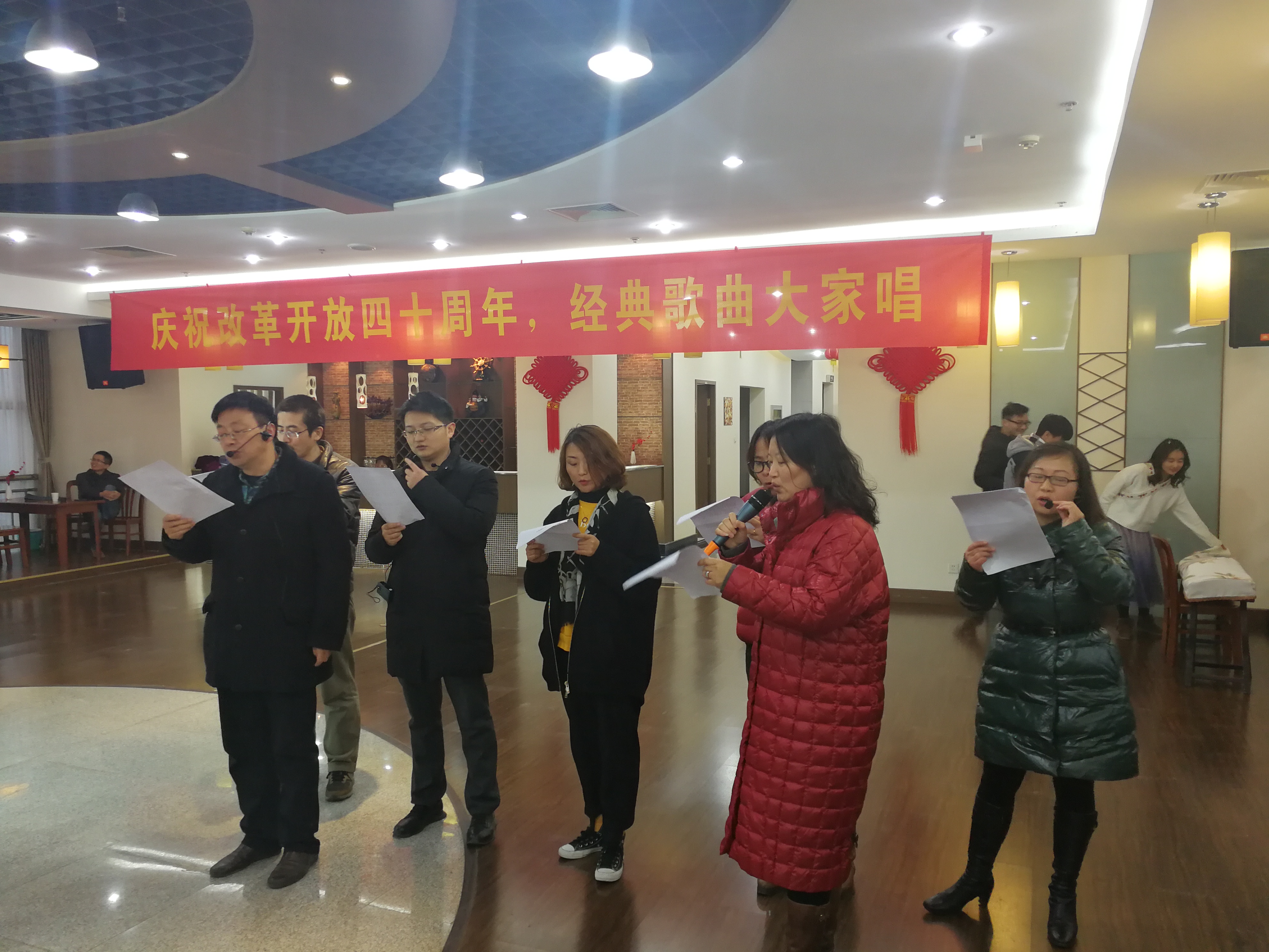在校行政楼“教工之家”,举办了庆祝“改革开放四十年,经典歌曲大家唱”歌咏比赛。比赛得到了校工会的大力支持,逼喱逼喱