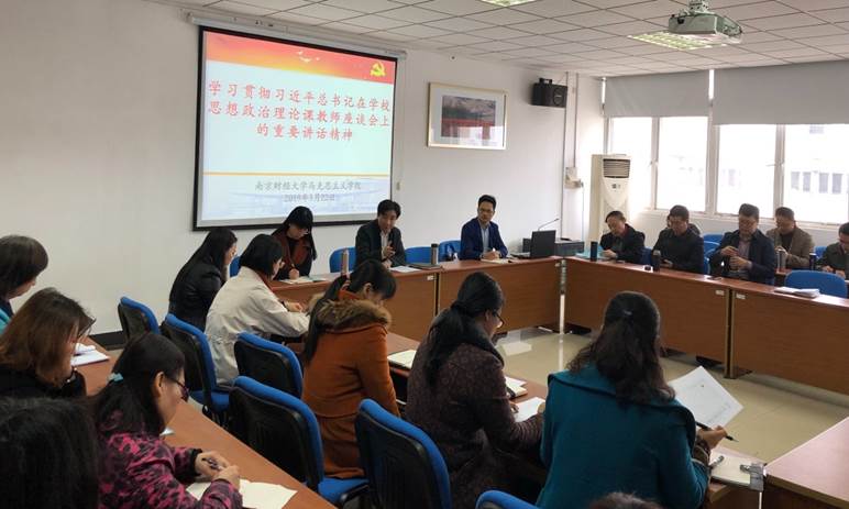 院长梅景辉教授从党中央对思政课的高度重视、思政课的精准定位、思政课教师的使命担当、思政课改革创新的方向原则等方面向全院师生详细解读了习近平总书记重要讲话精神,强调马院教师需要认真学习领会、有效贯彻落实讲话精神中“六个要”、“八个统一”、“四个服务”的新要求,进一步坚定“四个自信”,凝聚“三大文化”力量,积极探索新时代思政课建设的基本规律。同时,梅院长强调,落实习近平总书记重要讲话精神还需要建立党委统一领导、党政齐抓共管、有关部门各司其职、全社会协同配合的工作格局,推动形成全党全社会努力办好思政课、教师认真讲好思政课、学生积极学好思政课的良好氛围,真正做到全员育人、全程育人、全方位育人。