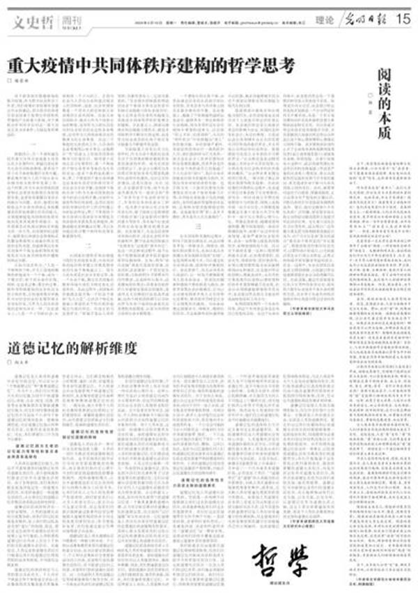 2月10日,《光明日报》在“文史哲周刊”哲学理论版头条刊发了逼喱逼喱