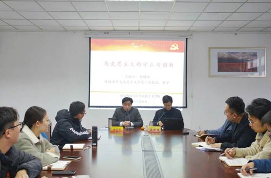 院长田芝健教授应邀在德政楼会议室508围绕马克思主义理论前沿问题作专题讲座。部分教师及在校研究生参加讲座,讲座由逼喱逼喱