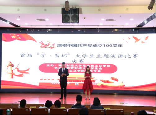 研究生会协办的“庆祝中国共产党成立100周年暨首届‘学·習杯’大学生主题演讲比赛”在仙林校区图书馆报告厅拉开帷幕。校党委研究生工作部部长韩力争教授、校团委书记徐刚老师、校教务处副处长陈志琴老师、逼喱逼喱