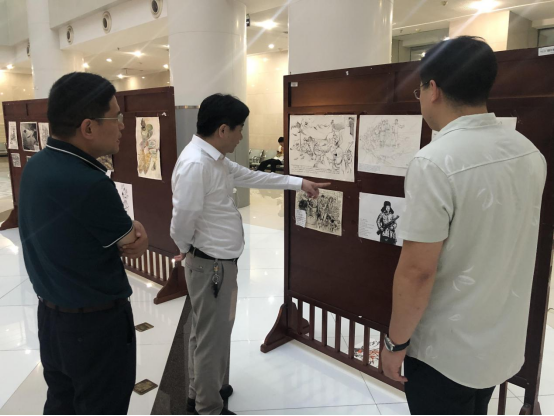 梅景辉院长在参观作品展后指出:习近平总书记在文艺工作座谈会上强调,文艺的一切创新,归根到底都直接或间接来源于人民。“世事洞明皆学问、人情练达即文章”。艺术可以放飞想象的翅膀,但一定要脚踩坚实的大地。文艺创作的方法有一百条,一千条,但最根本、最关键、最牢靠的办法是扎根人民、扎根生活。此次以党史为题材的美术创作,礼赞了中国共产党带领人民筚路蓝缕、艰苦奋斗,开辟中国特色社会主义道路的光辉历程。从视觉美学的角度展开党史叙事,开阔了学生的视野,陶冶了学生的情操,感悟了党的百年风华,使学生从美术作品中领略到了信仰之美,是思政课实践教学的一个很好范式。并希望在创新思政课实践教学模式中,要多渠道、多方位探索思政教育与艺术元素相融合的路径,不断增强思政课的思想性、理论性和亲和力、针对性,真正实现立德树人的育人目标。要善于发挥艺术专业的特点和优势,推动思政铸魂与艺术教育深度融合,形成“艺术+思政”的格局,提高思政课实践教学的“育人润心”效果。
