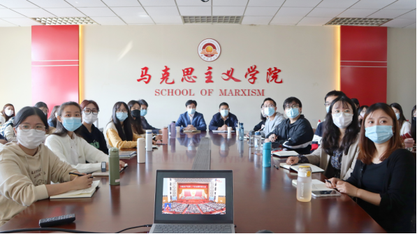 院长梅景辉教授、党总支书记陈翔副教授、院长助理范渊凯副教授及全体研究生在学院会议室集体收看了中国共产党第二十次全国代表大会开幕盛况。