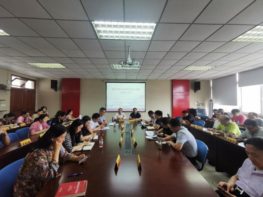 在德正楼508会议室召开全院教职工大会,学院党政领导班子成员和全体教师参加会议。会议由院党委书记陈翔主持。