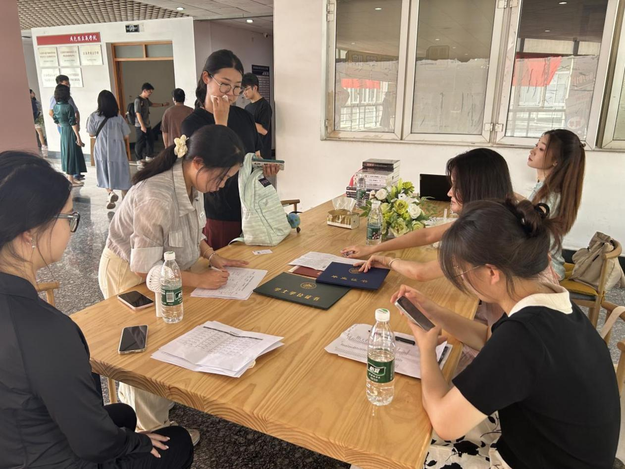 新生们在学长学姐们的耐心引导下到校签到、核对信息、递交相关材料、领取学生卡,全体新生顺利完成了各项入学报到手续。同时,学院为申请绿色通道的新生发放了学科经典著作。