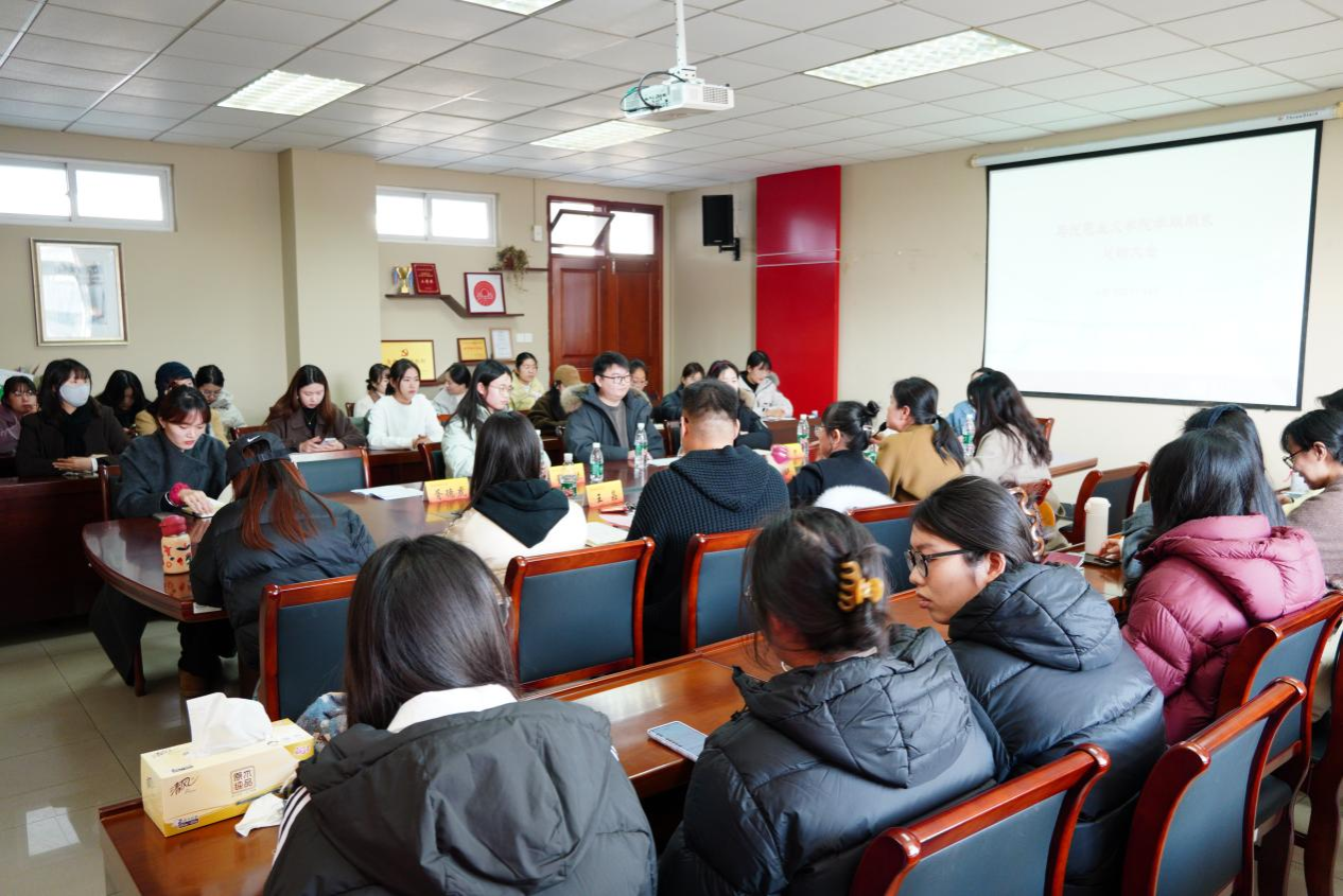 学子要在马言马、在马信马,成为马克思主义的坚定守护者、积极传播者与规范践行者。教研秘书张妍老师围绕研究生培养提出建议,她鼓励同学们积极参与学术讲座,认真投入论文撰写,不断提高自身的学术素养。王彦杰老师从科研选题、科研论证、科研语言为我们深刻阐述了“什么是科研”。解兆丹老师针对研究生论文提出建议,鼓励同学们在掌握本专业知识的基础上,积极涉猎不同的学科领域,在学习的过程中主动跳出既定思维,追求学科交互创新。胥德虎同学回顾了过去一年研究生会组织的各项活动,并代表研究生会感谢所有领导、老师与同学们的信任与支持。