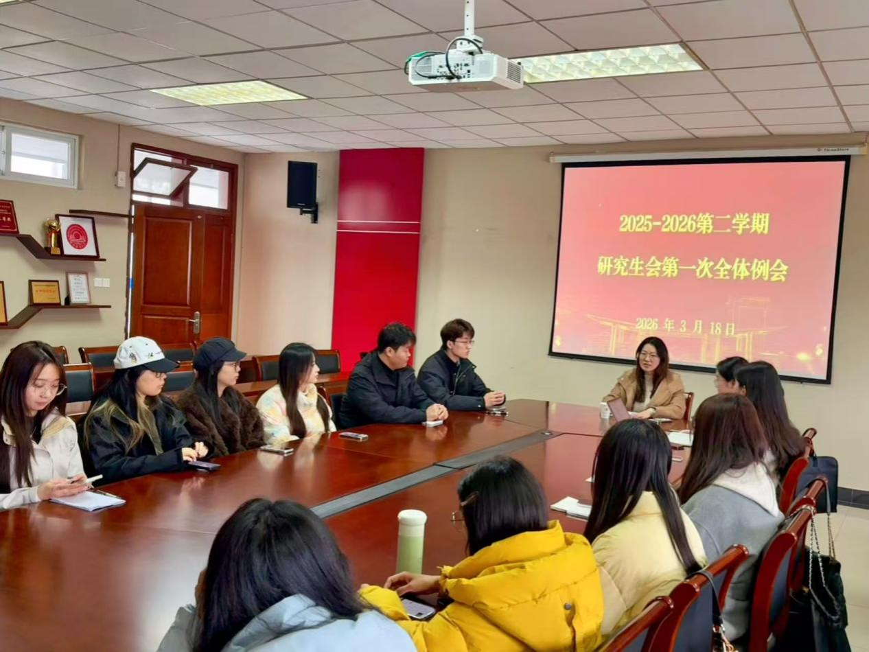 2025-2026学年第二学期研究生会第一次全体例会。学院副院长(挂)解兆丹老师、研会主席方蒙及主席团成员出席会议,全体研会成员参加,会议由研会主席方蒙主持。
