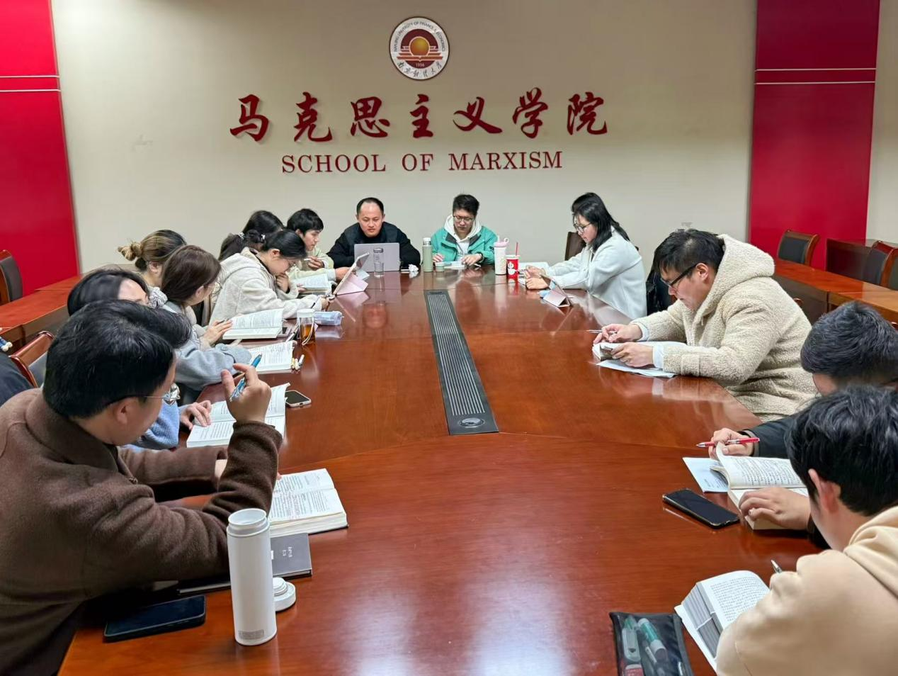 研究生会组织的“书香马院”读书会活动在德正楼508会议室顺利开展。本次读书会特邀谢家新、吴伟两位老师主讲,青年教师亓为康、何佳慕、辅导员王晶老师以及2024级、2025级研究生共同参加。
