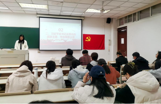 研究生党支部于德正楼204教室召开深入学习贯彻两会精神专题学习会。会议由支部书记朱茜同志主持,支部副书记曹飞燕同志领学,支部全体党员参加会议。