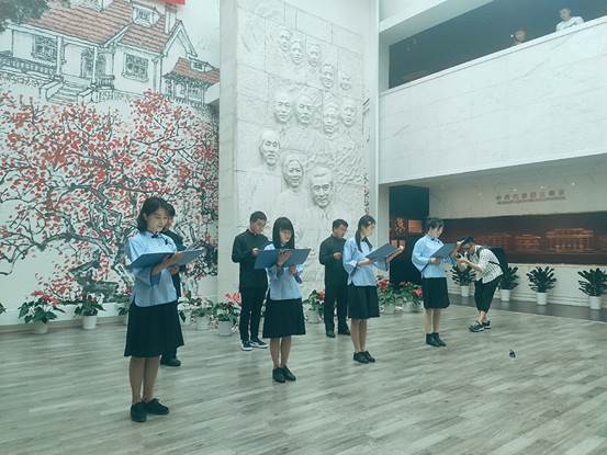 活动中,学院研究生党员和入党积极分子在梅园新村朗诵《周总理办公室的灯光》、合唱《五月的花海》。