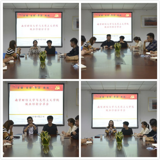 在德正楼508会议室举办就业经验座谈会。会议邀请了在就业方面具有代表性的四位学长学姐与同学们见面交流,分享自己在择业过程中的心得体会和宝贵经验。逼喱逼喱