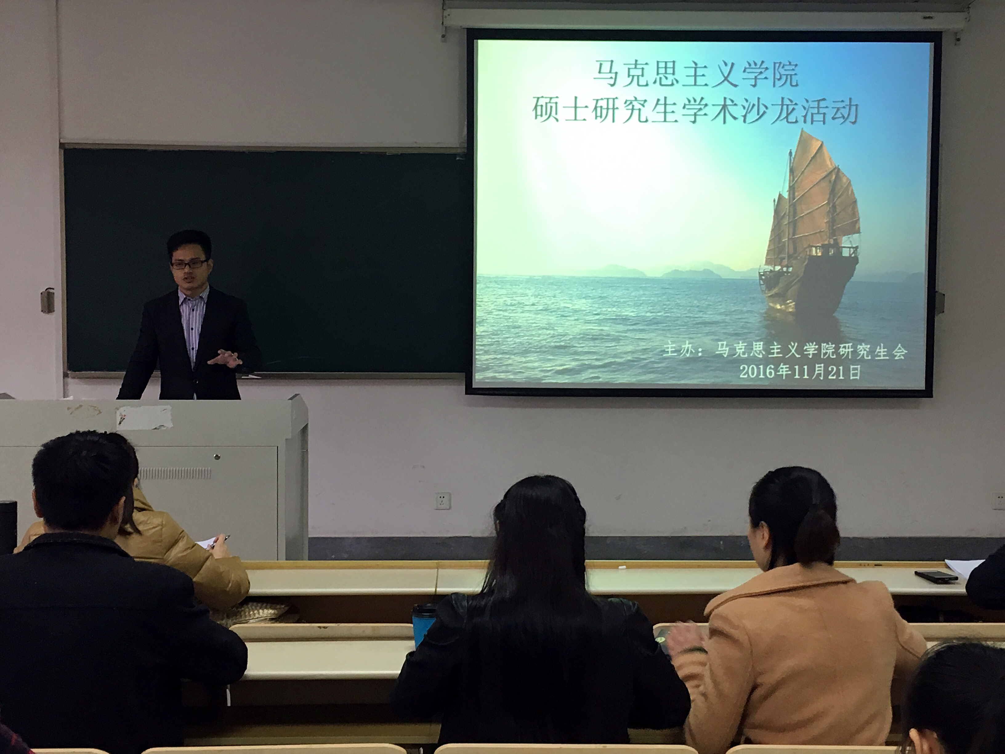 活动中,2015级冒林波同学讲解了题为《毛泽东的创新思想及其当代价值》的课程论文、2016级叶玲慧和张楠同学分别讲解了题为《思想政治教育专业大学生道德素质调查研究》和《关于中国特色社会主义文化自信研究述评》论文,2016级许阳、祁海珍和周金伟同学分别作为指定点评人进行了点评。陈云云老师在同学点评完之后,分别就该篇论文的优点和不足之处进行了说明,并就学术论文的选题选择和摘要写作等方面给出了实质性建议和指导,活动现场交流气氛活跃。