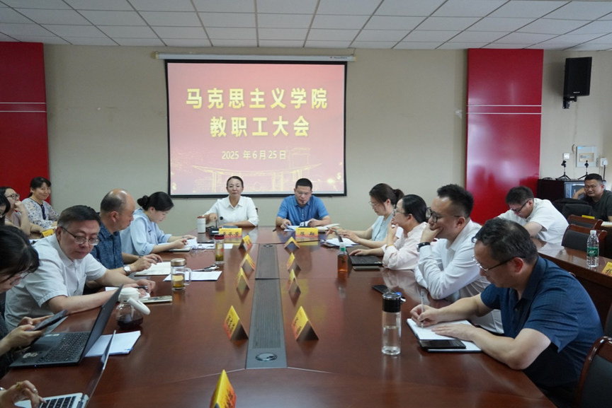 在德正楼508会议室召开期末教职工大会。全体教职工参加会议,会议由学院党委书记陈翔主持。